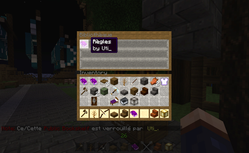 Son utilisation est on ne peut plus simple; déposez une bibliothèque et cliquez droit dessus, exactement comme un coffre, et déposez-y vos items.