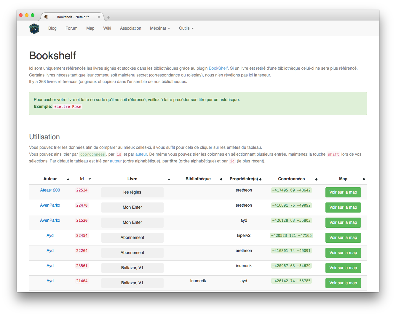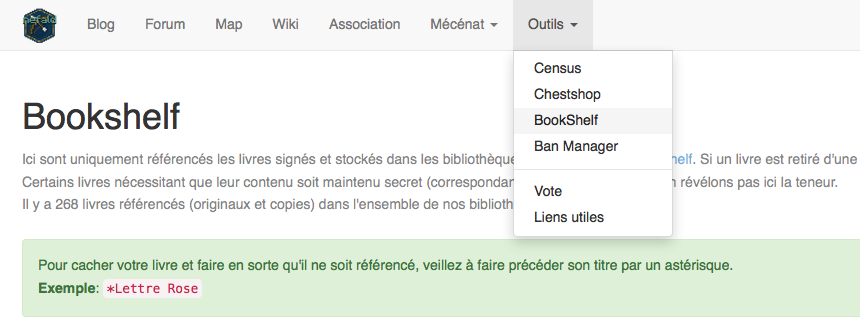 Nous utilisons depuis plusieurs années déjà sur Nefald, un plugin exceptionnel: BookShelf. On vous la fait courte, grâce à lui l'ensemble des books, maps et papers peuvent être entreposés dans des bookshelves et ainsi sauvegardés. Il devient alors aisé de partager du contenu et notamment notre Roleplay.