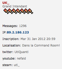 Celui-ci apparaitra sur votre profil ainsi qu'à côté de chacun de vos messages forums, comme ceci :