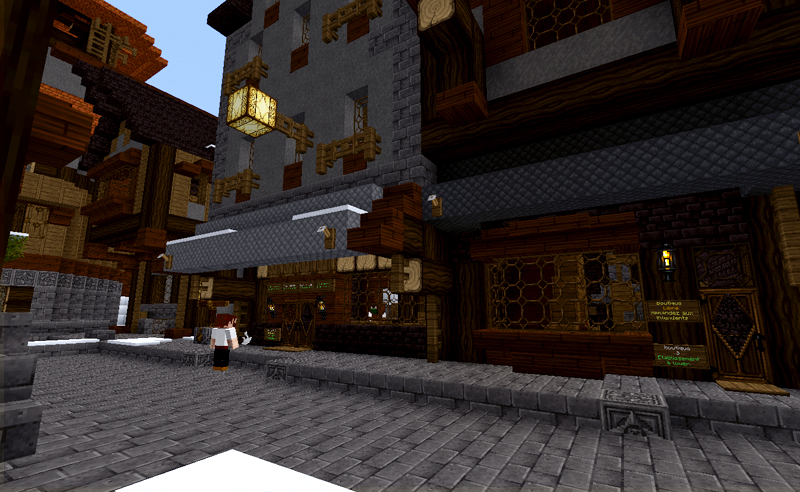 Vous y trouverez pour l'instant trois boutiques libres et une boutique occupée par mikaone notre marchand de laine o/. Un forgeron s'est aussi installé, contre quelques écus il réparera vos armes et outils (enchantés ou non). La forge possède une boutique à l'étage, on apprécierait y voir s'installer un armurier.